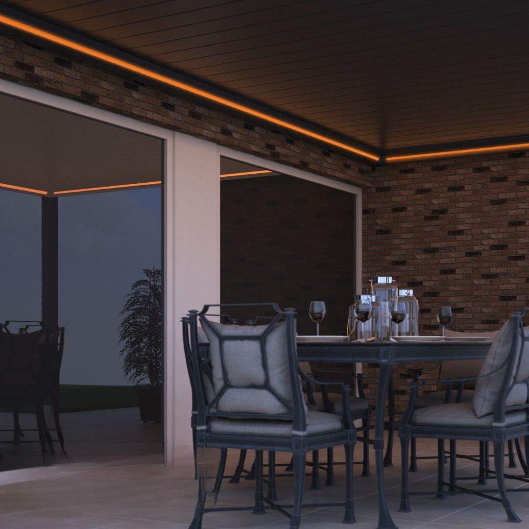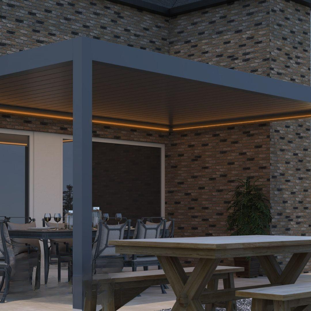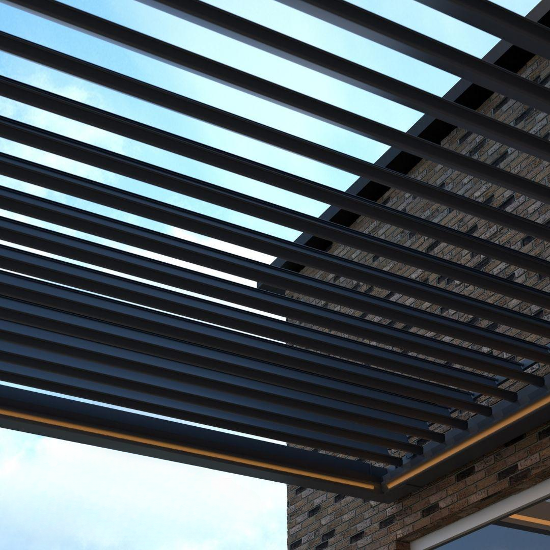 Ať už je roční období jakékoli, s Pinela budete mít na své terase povětrnostní podmínky pod kontrolou. Lamely lze totiž naklonit až o 120 stupňů. Stisknutím tlačítka si můžete hrát se světlem, stínem a prouděním vzduchu pod stříškou.